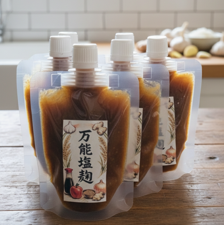 万能塩麹のほかにニンニク生姜干しエビの出汁麹があります